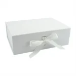 Луксозна сгъваема кутия с панделка в бял цвят.