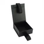 Тази сгъваема луксозна кутия е изработена от твърд картон каширана в черен цвят и матово покритие. Точните вътрешни размери на кутията са 9,5 х 11 х 4,5 см; Затварянето на кутия е решено с магнити и като декоративен елемент сме добавили панделка в цвета на кутията.
