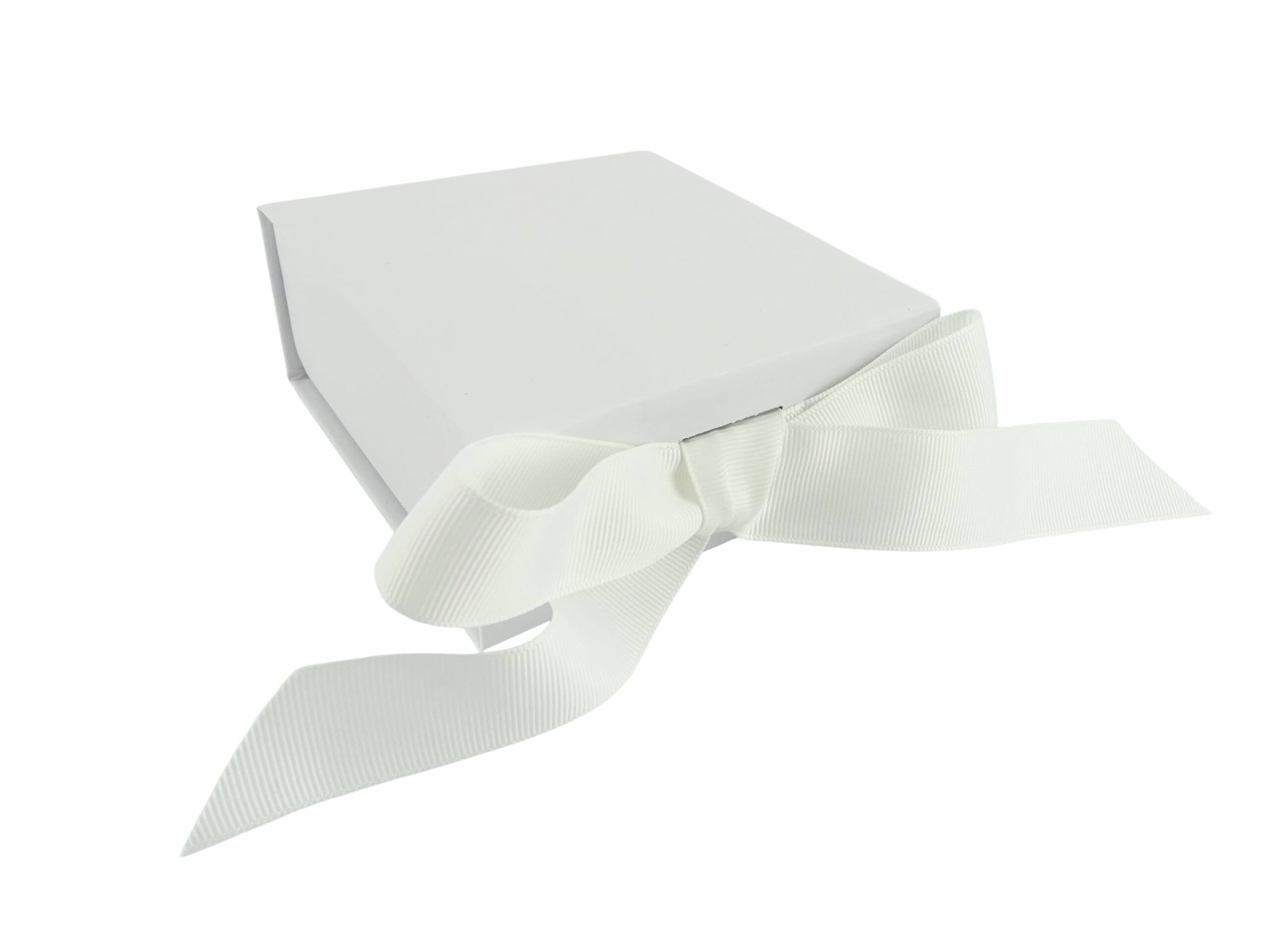 Малка луксозна кутия с панделка в бял цвят 9/11/4 см